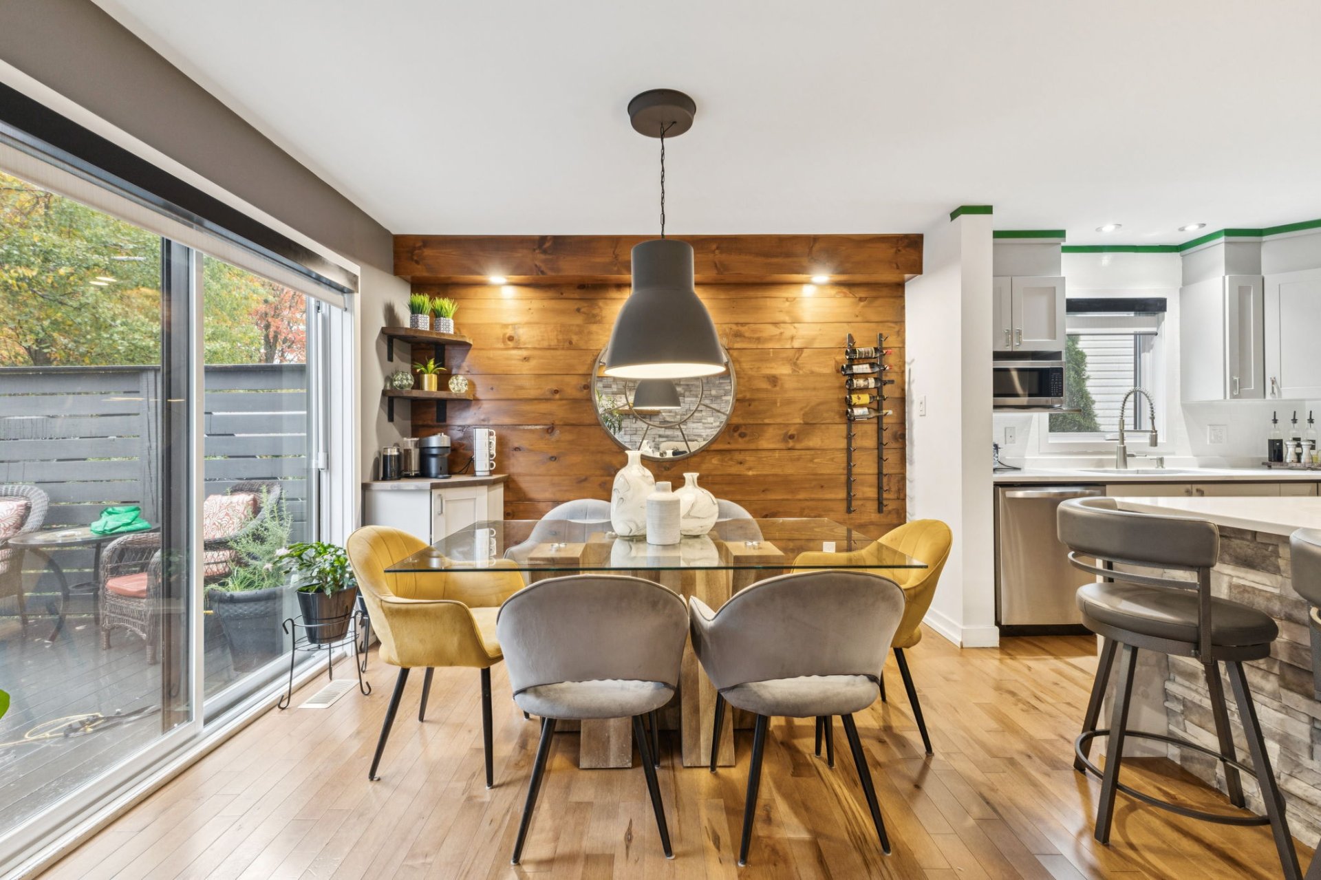| Salle à manger | 10.7 x 10.11 P | Rez-de-chaussée | Bois |